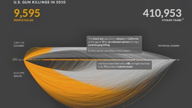 This work may be be more like Hemingway's for-sale story than a 2-year old's story, although in fact it leaves less to the imagination while it veers further from traditional journalism as it does so. Yet this is still data visualization taking an artistic narrative risk, for the sake of activism.