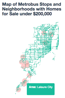 Jennifer Hernandez looked at the distribution of public transportation options in Miami-Dade county. She made some amazing point maps of bus stations (the small blue dots, which have tooltips) and the metrorail stops (bigger dots).